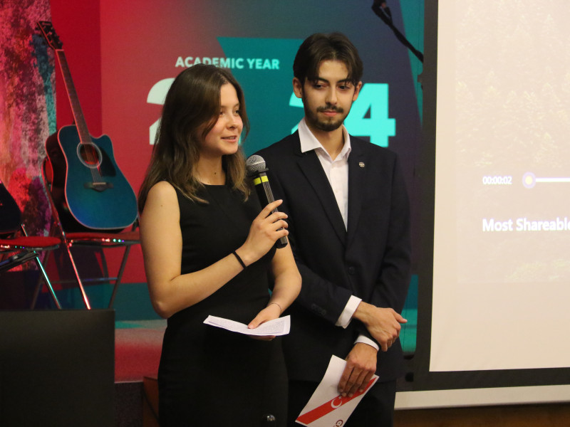 The grand finale took place in the Auditorium Copernicus, where an interactive presentation showcased each country's unique attractions. The evening was further enlivened by a musical performance featuring our students Mehmet Burak BULAT, Meriç DEMIRCIOĞLU, and Emin ÜNVER. To top it off, a Kahoot! game was organized, with three lucky winners receiving delightful local products.